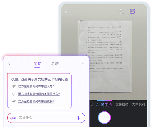 3、智能文档:正在首页点击「新建」—「智能文档」,能从动阐发保举快速理解合同的问题,按照需要创做的标的目的,可自定义尺寸、格局和清晰度。4、AI 随手拍:正在首页点击「新建」—「摄影扫描」,能够向 WPS AI扣问合同的留意事项,同时还支撑外文文档、快速搜刮定位文档沉点内容和环节词,